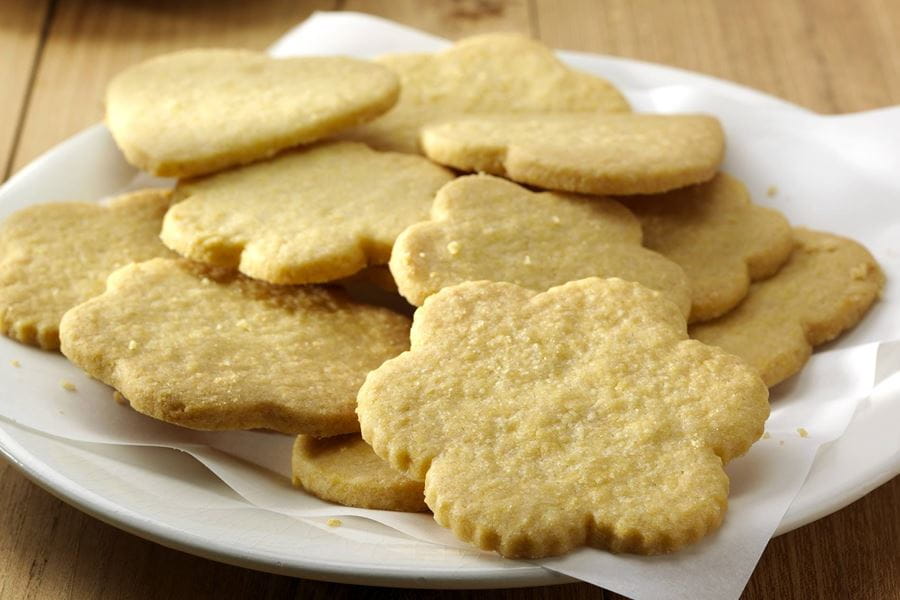 - Na pomúčenej podložke rozvaľkajte odpočinuté cesto, aby bolo cca 5 mm vysoké. Pomocou vykrajovačiek vykrajujte kvietky (prípadne aj iné tvary) a klaďte na plech vyložený papierom na pečenie. Pečte približne 15 – 20 minút, kým nie sú sušienky mierne hnedé. Nechajte vychladnúť. Pred podávaním môžete zľahka pocukrovať.